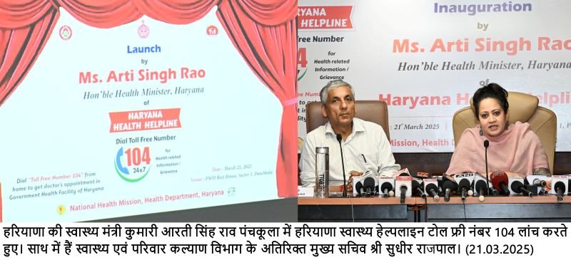-हरियाणा स्वास्थ्य हैल्प लाईन टोल फ्री नंबर 104 की शुरूआत