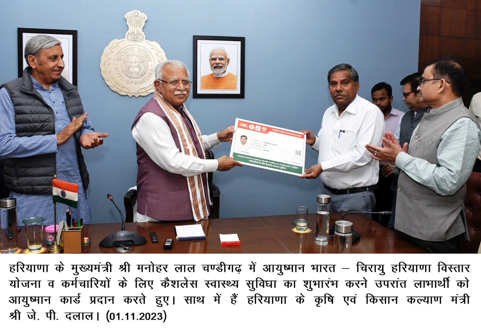 आयुष्मान चिरायु हरियाणा योजना के तहत कैशलेस स्वास्थ्य सुविधा का मुख्यमंत्री ने किया शुभारंभ