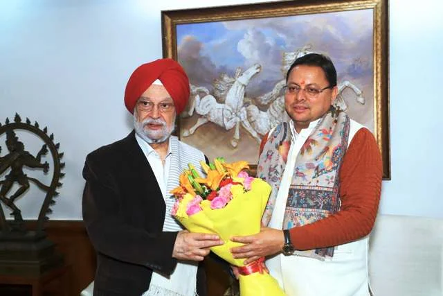 नई दिल्ली, 7 जनवरी। उत्तराखंड के मुख्यमंत्री पुष्कर सिंह धामी ने नई दिल्ली स्थित शास्त्री भवन में केंद्रीय पेट्रोलियम और प्राकृतिक गैस मंत्री हरदीप पुरी से शिष्टाचार भेंट की।