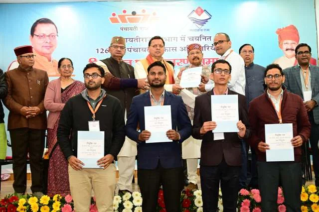 देहरादून, 27 फरवरी। उत्तराखंड के मुख्यमंत्री पुष्कर सिंह धामी ने गुरुवार को पंचायती राज विभाग के अन्तर्गत 126 नवनियुक्त ग्राम पंचायत विकास अधिकारियों को नियुक्ति पत्र प्रदान किए।