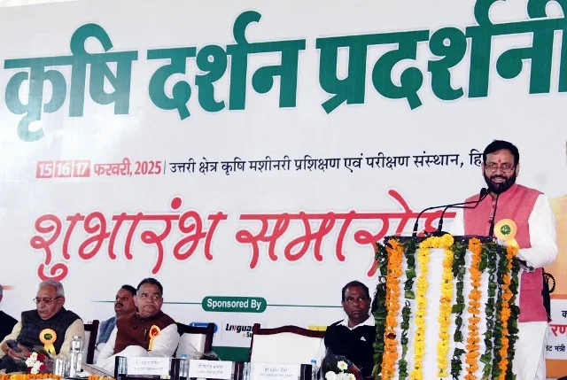 मुख्यमंत्री आज हिसार के उत्तरी क्षेत्र फार्म मशीनरी प्रशिक्षण एवं परीक्षण संस्थान में एग्री इंडिया एग्जिबिशन, करनाल द्वारा आयोजित तीन दिवसीय कृषि दर्शन प्रदर्शनी का शुभारम्भ करने उपरांत किसानो और कृषि जगत से जुड़े अन्य लोगों को सम्बोधित कर रहे थे। उन्होंने कहा कि यह प्रदर्शनी हरियाणा सरकार के कृषि मशीनरीकरण अभियान को नई गति देने तथा किसानों को उन्नत कृषि की नई तकनीकों की जानकारी देने में सहायक सिद्ध होगी।