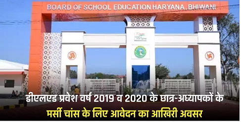 हरियाणा विद्यालय शिक्षा बोर्ड भिवानी द्वारा डीएलएड प्रवेश वर्ष 2019 व 2020 के छात्र-अध्यापकों को फरवरी-2024 में संचालित होने वाली परीक्षा हेतु मर्सी चांस दिया गया है