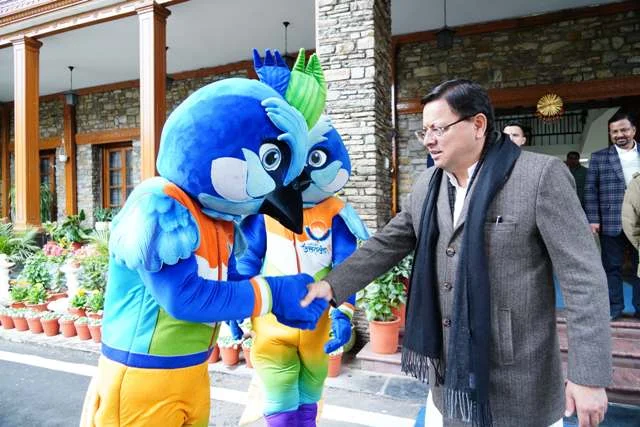 देहरादून, 15 फरवरी। 38वें राष्ट्रीय खेल में लोगों के आकर्षण का मुख्य केंद्र रहा शुभंकर ‘मौली’ राष्ट्रीय खेलों के समापन के बाद सीएम आवास पहुंचा। मुख्यमंत्री ने सीएम आवास में मौली का स्वागत किया। राष्ट्रीय खेलों का शुभंकर प्रतीक ’मौली’ (मोनाल पक्षी) देशभर में चर्चा का केंद्र रहा है।