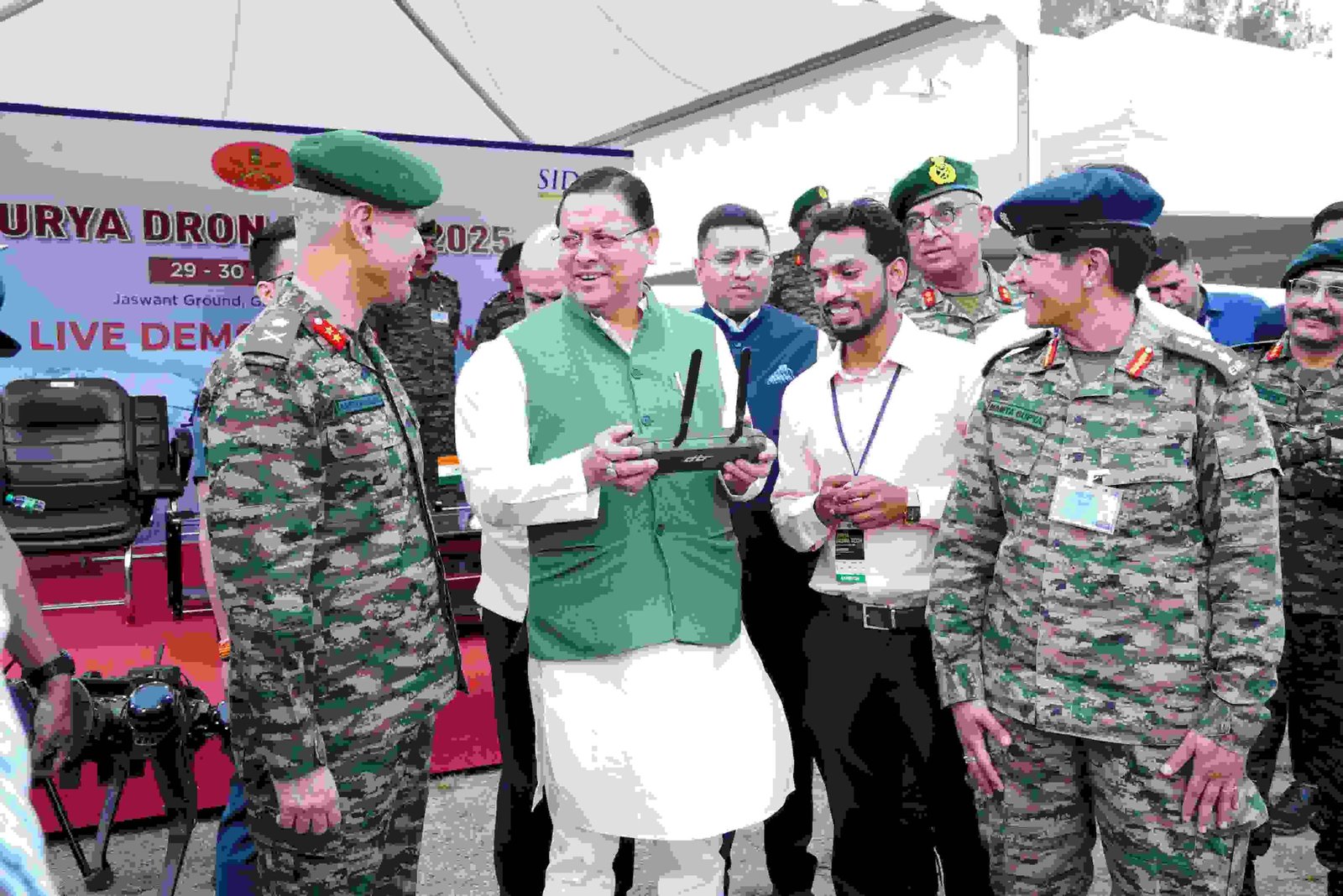 मुख्यमंत्री श्री पुष्कर सिंह धामी देहरादून छावनी के जसवंत ग्राउंड में आयोजित ‘‘सूर्या ड्रोन टेक 2025’’ कार्यक्रम में सम्मिलित हुए तथा ड्रोन प्रदर्शनी का अवलोकन किया।