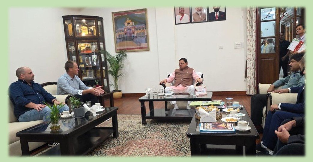 देहरादून 25 अप्रैल 2025 : एडवेंचर टूरिज्म के क्षेत्र में वैश्विक स्तर पर प्रसिद्ध संस्था ए.जे. हैकेट इंटरनेशनल के मुख्य परिचालन अधिकारी (COO) श्री जयडे हैकेट ने आज मुख्यमंत्री श्री पुष्कर सिंह धामी से शिष्टाचार भेंट की। इस दौरान प्रदेश में विश्व स्तरीय बंजी जंपिंग प्रोजेक्ट्स को स्थापित करने और अंतरराष्ट्रीय स्तर के एडवेंचर टूरिज्म को बढ़ावा देने को लेकर गहन चर्चा की गई।
