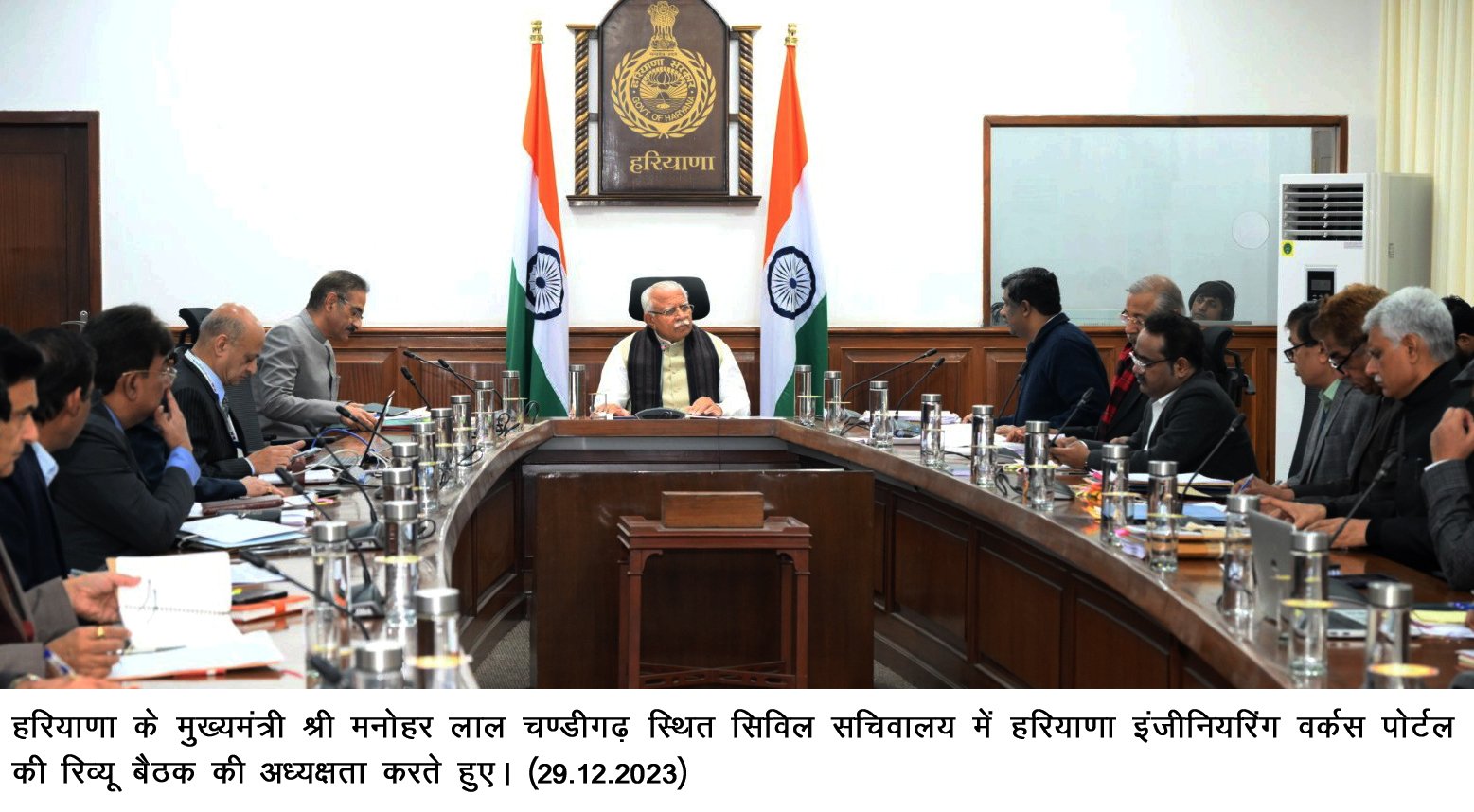 मुख्यमंत्री श्री मनोहर लाल आज यहां हरियाणा इंजीनियरिंग वर्क्स पोर्टल की समीक्षा बैठक की अध्यक्षता कर रहे थे।