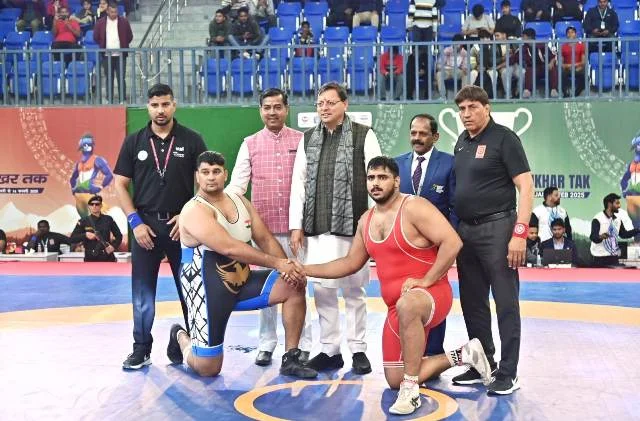 देहरादून, 12 फरवरी। उत्तराखंड के मुख्यमंत्री पुष्कर सिंह धामी ने बुधवार को वन्दना कटारिया स्पोर्ट्स स्टेडियम पहुंचकर 38वें राष्ट्रीय खेलों के अन्तर्गत आयोजित कुश्ती तथा हॉकी प्रतियोगिता का शुभारंभ किया। इस अवसर पर मुख्यमंत्री ने सभी खिलाड़ियों से मुलाकात कर उनका उत्साह वर्धन किया।